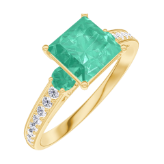 Anillo Oro amarillo 9 quilates - Esmeralda Princesa 1 quilates - Piedras laterales Esmeralda - Engastado Diamante