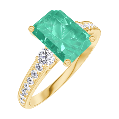 « L'ATELIER » Nº169225Anillo Oro amarillo 18 quilates - Esmeralda Rectángulo 1 quilates - Piedras laterales Diamante - Engastado Diamante 4.6