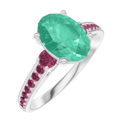 Anillo Oro blanco 9 quilates - Esmeralda Ovalo 1 quilates - Piedras laterales Rubí - Engastado Rubí