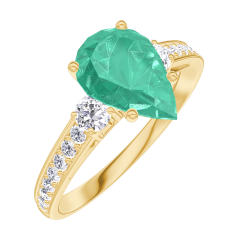 Anillo Oro amarillo 18 quilates - Esmeralda Pera 1 quilates - Piedras laterales Diamante - Engastado Diamante