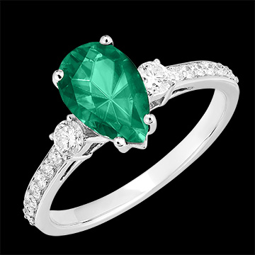 « L'ATELIER » N.º 169427Anillo Oro blanco 18 quilates - Esmeralda Pera 1 quilates - Piedras laterales Diamante - Engastado Diamante