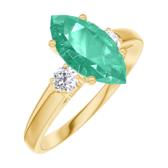 Anillo Oro amarillo 9 quilates - Esmeralda Marquesa 1 quilates - Piedras laterales Diamante