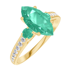 Anillo Oro amarillo 9 quilates - Esmeralda Marquesa 1 quilates - Piedras laterales Esmeralda - Engastado Diamante