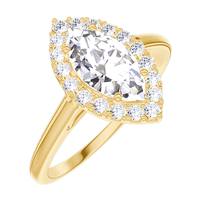 « L'ATELIER » N.º 170242Anillo Oro amarillo 9 quilates - Diamante Marquesa 0.5 quilates - Halo Diamante