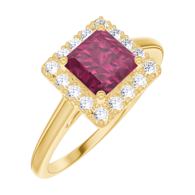 « L'ATELIER » Nº170337Anillo Oro amarillo 18 quilates - Rubí Princesa 0.5 quilates - Halo Diamante 4.6