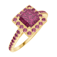 Anillo Oro amarillo 9 quilates - Rubí Princesa 0.5 quilates - Halo Rubí - Engastado Rubí