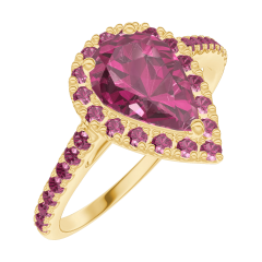 Anillo Oro amarillo 18 quilates - Rubí Pera 0.5 quilates - Halo Rubí - Engastado Rubí