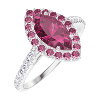 « L'ATELIER » Nº170552Anillo Oro blanco 9 quilates - Rubí Marquesa 0.5 quilates - Halo Rubí - Engastado Diamante