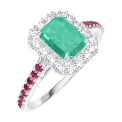 « L'ATELIER » N.º 170971Anillo Oro blanco 18 quilates - Esmeralda Rectángulo 0.5 quilates - Halo Diamante - Engastado Rubí 4.9