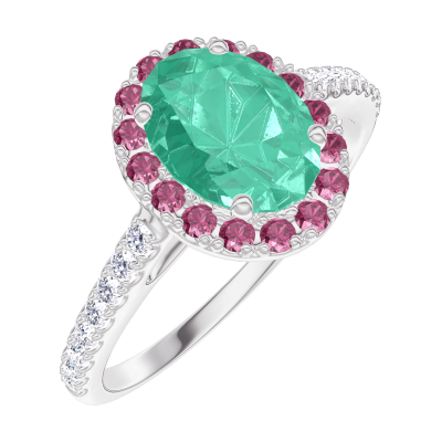 « L'ATELIER » Nº171031Anillo Oro blanco 18 quilates - Esmeralda Ovalo 0.5 quilates - Halo Rubí - Engastado Diamante 4.8 (12)