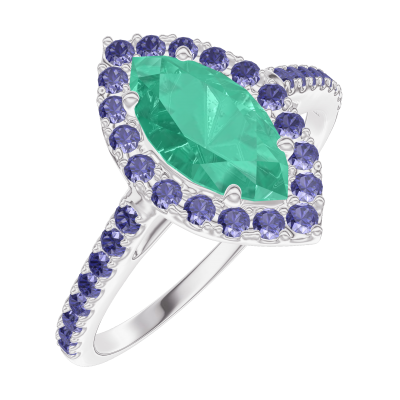 « L'ATELIER » N.º 171151Anillo Oro blanco 18 quilates - Esmeralda Marquesa 0.5 quilates - Halo Zafiro azul - Engastado Zafiro azul
