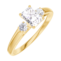 Anillo Oro amarillo 18 quilates - Diamante de laboratorio Rectángulo 0.3 quilates - Piedras laterales Diamante de laboratorio