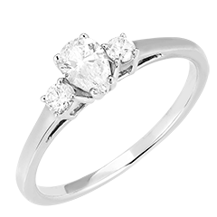 Anillo Oro blanco 18 quilates - Diamante de laboratorio Pera 0.3 quilates - Piedras laterales Diamante de laboratorio