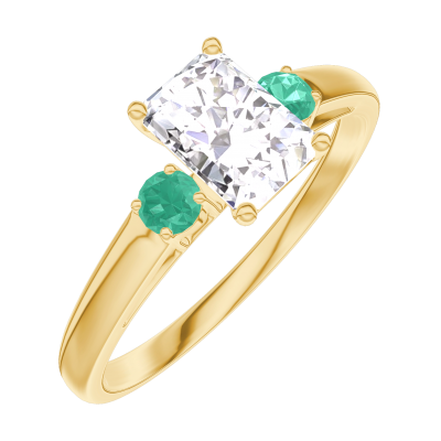 « L'ATELIER » N.º 182681Anillo Oro amarillo 18 quilates - Diamante de laboratorio Rectángulo 0.5 quilates - Piedras laterales Esmeralda