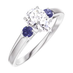 Anillo Oro blanco 18 quilates - Diamante de laboratorio Pera 0.5 quilates - Piedras laterales Zafiro azul