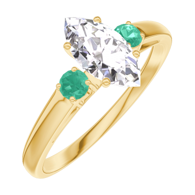 « L'ATELIER » N.º 182982Anillo Oro amarillo 9 quilates - Diamante de laboratorio Marquesa 0.5 quilates - Piedras laterales Esmeralda