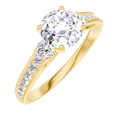 Anillo Oro amarillo 9 quilates - Diamante de laboratorio redondo 0.7 quilates - Piedras laterales Diamante de laboratorio - Engastado Diamante de laboratorio