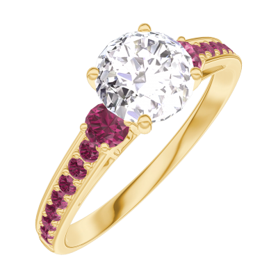 « L'ATELIER » Nº184850Anillo Oro amarillo 9 quilates - Diamante de laboratorio redondo 0.7 quilates - Piedras laterales Rubí - Engastado Rubí 5