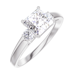 Anillo Oro blanco 9 quilates - Diamante de laboratorio Princesa 0.7 quilates - Piedras laterales Diamante de laboratorio