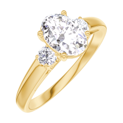 Anillo Oro amarillo 9 quilates - Diamante de laboratorio Ovalo 0.7 quilates - Piedras laterales Diamante de laboratorio