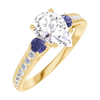 « L'ATELIER » Nº185265Anillo Oro amarillo 18 quilates - Diamante de laboratorio Pera 0.7 quilates - Piedras laterales Zafiro azul - Engastado Diamante de laboratorio