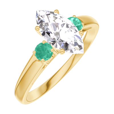 « L'ATELIER » N.º 185381Anillo Oro amarillo 18 quilates - Diamante de laboratorio Marquesa 0.7 quilates - Piedras laterales Esmeralda