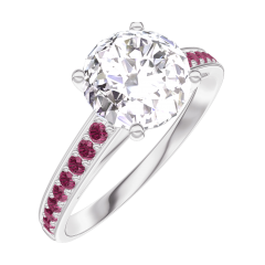 Anillo Oro blanco 18 quilates - Diamante de laboratorio redondo 1 quilates - Engastado Rubí