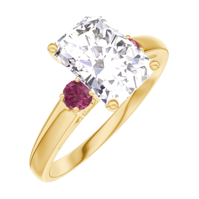 « L'ATELIER » Nº187442Anillo Oro amarillo 9 quilates - Diamante de laboratorio Rectángulo 1 quilates - Piedras laterales Rubí 4.6