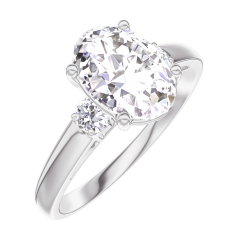 Anillo Oro blanco 18 quilates - Diamante de laboratorio Ovalo 1 quilates - Piedras laterales Diamante de laboratorio