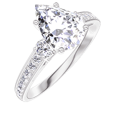 Anillo Oro blanco 9 quilates - Diamante de laboratorio Pera 1 quilates - Piedras laterales Diamante de laboratorio - Engastado Diamante de laboratorio