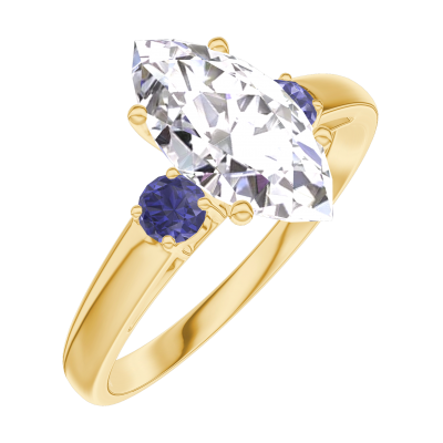 « L'ATELIER » N.º 187762Anillo Oro amarillo 9 quilates - Diamante de laboratorio Marquesa 1 quilates - Piedras laterales Zafiro azul