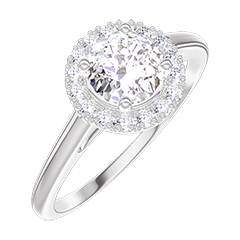Anillo Oro blanco 9 quilates - Diamante de laboratorio redondo 0.5 quilates - Halo Diamante de laboratorio