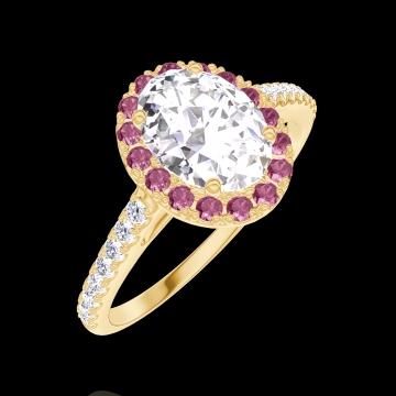 « L'ATELIER » Nº190166Anillo Oro amarillo 9 quilates - Diamante de laboratorio Ovalo 0.5 quilates - Halo Rubí - Engastado Diamante de laboratorio 4.8 (12)