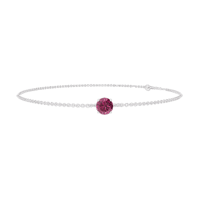 « L'ATELIER » Nº200387Pulsera Oro blanco 18 quilates - Rubí redondo 0.3 quilates - Cadenas Esclavas 4.3