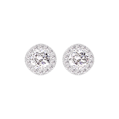 Pendientes Oro blanco 18 quilates - Diamante de laboratorio redondo 0.3 quilates (2 X) - Halo Diamante de laboratorio