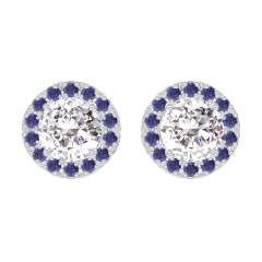« L'ATELIER » N.º 201072Pendientes Oro blanco 9 quilates - Diamante de laboratorio redondo 0.3 quilates (2 X) - Halo Zafiro azul 5