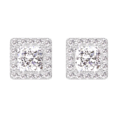 « L'ATELIER » N.º 201079Pendientes Oro blanco 18 quilates - Diamante de laboratorio Princesa 0.3 quilates (2 X) - Halo Diamante de laboratorio
