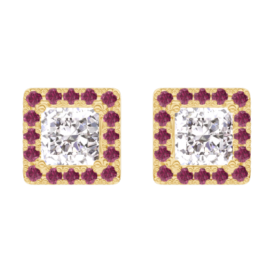 « L'ATELIER » N.º 201081Pendientes Oro amarillo 18 quilates - Diamante de laboratorio Princesa 0.3 quilates (2 X) - Halo Rubí