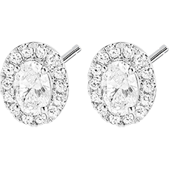 Pendientes Oro blanco 18 quilates - Diamante de laboratorio Ovalo 0.3 quilates (2 X) - Halo Diamante de laboratorio