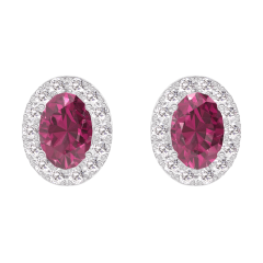 Pendientes Oro blanco 18 quilates - Rubí Ovalo 0.3 quilates (2 X) - Halo Diamante