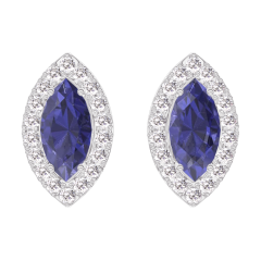 Pendientes Oro blanco 18 quilates - Zafiro azul Marquesa 0.3 quilates (2 X) - Halo Diamante