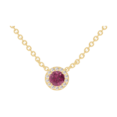 Collar Oro amarillo 9 quilates - Rubí redondo 0.3 quilates - Halo Diamante - Cadenas Esclavas