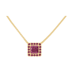 « L'ATELIER » N.º 201878Collar Oro amarillo 9 quilates - Rubí Princesa 0.3 quilates - Halo Rubí - Cadenas Veneciana