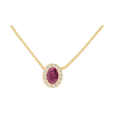 « L'ATELIER » Nº201934Collar Oro amarillo 9 quilates - Rubí Ovalo 0.3 quilates - Halo Diamante - Cadenas Veneciana