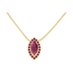 Collar Oro amarillo 18 quilates - Rubí Marquesa 0.3 quilates - Halo Rubí - Cadenas Veneciana
