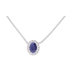« L'ATELIER » N.º 202128Collar Oro blanco 9 quilates - Zafiro azul Ovalo 0.3 quilates - Halo Diamante - Cadenas Veneciana