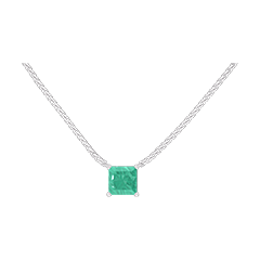 Collar Oro blanco 18 quilates - Esmeralda Princesa 0.3 quilates - Cadenas Veneciana