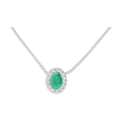 Collar Oro blanco 9 quilates - Esmeralda Ovalo 0.3 quilates - Halo Diamante - Cadenas Veneciana