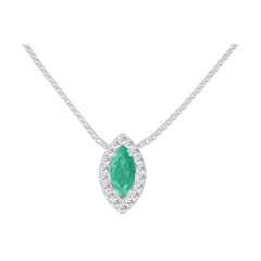 Collar Oro blanco 18 quilates - Esmeralda Marquesa 0.3 quilates - Halo Diamante - Cadenas Veneciana