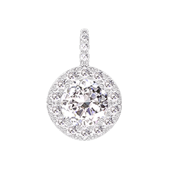 Colgante Oro blanco 9 quilates - Diamante redondo 0.3 quilates - Halo Diamante - Engastado Diamante - Ninguna cadena